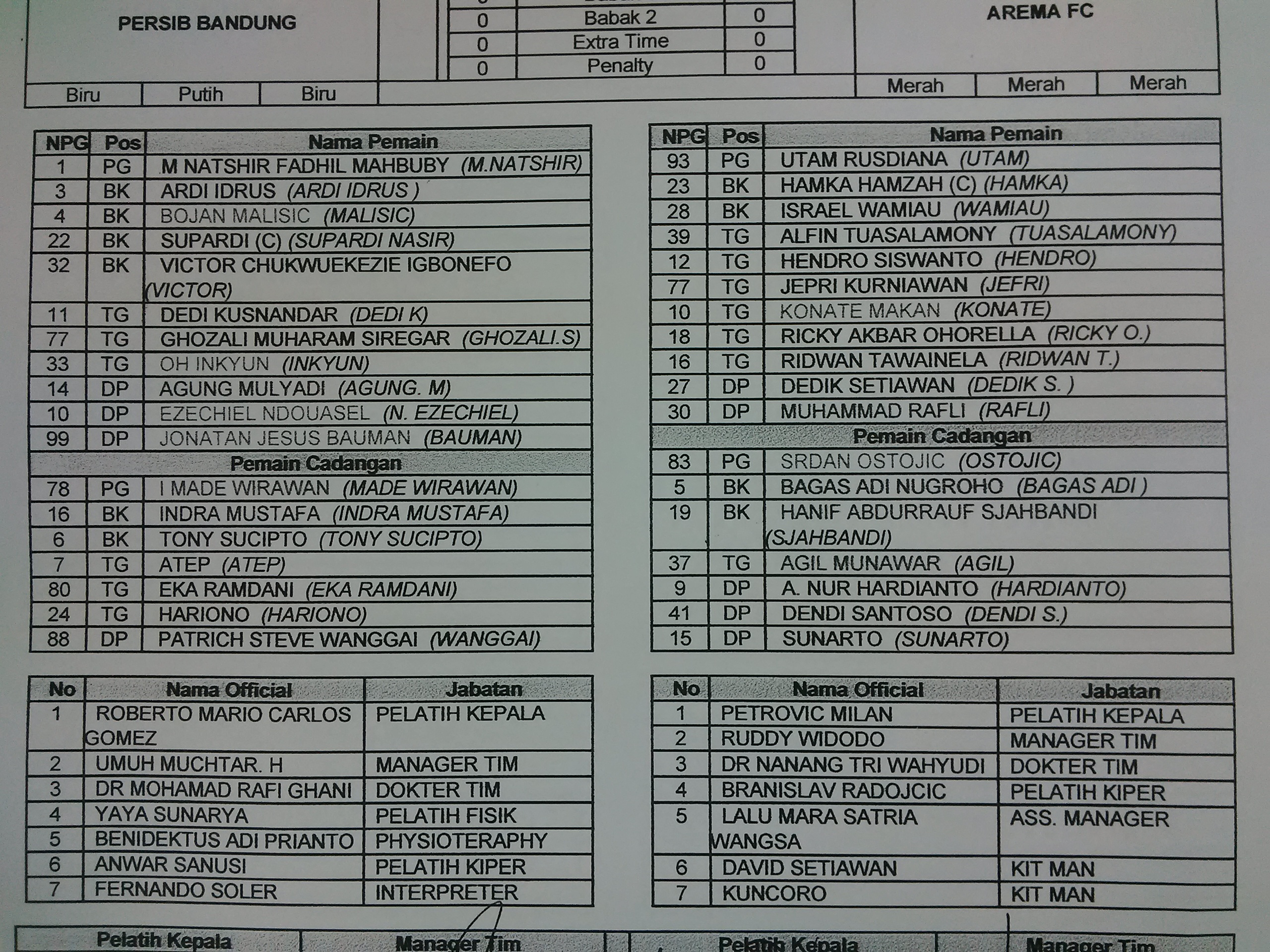 Berikut ini daftar susunan pemain Persib: