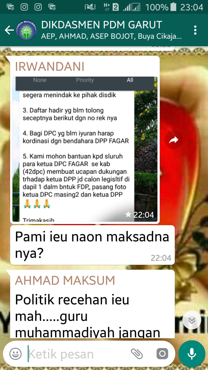 Hal itu sambug Aep terungkap setelah Sekretaris PDM Garut, Irwandani mempostingnya di WhatsApp Grup (WAG) DIKDASMEN PDM GARUT.