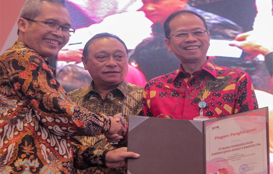 Penghargaan diterima langsung oleh Direktur Utama bank bjb Ahmad Irfan, bertepatan dengan penyelenggaraan dan peringatan Hari Anti Korupsi se-Dunia (Hakordia) 2018 dan diserahkan langsung oleh Wakil Ketua KPK Alexander Marwata di Hotel Bidakara Jakarta.