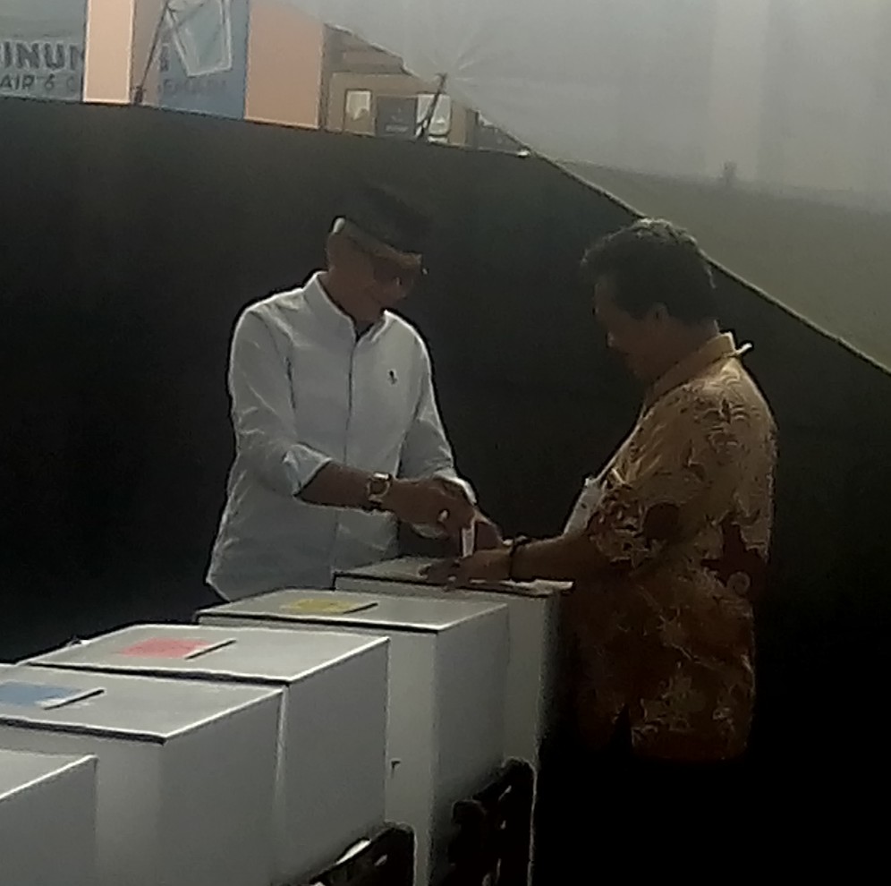 BANJAR, FOKUSJabar.id: Calon Legislatif (Caleg) DPR RI Dapil X Jawa Barat dari Partai Golkar Agun Gunanjar Sudarsa atau Kang Agun melakukan hak pilihnya di TPS 36 Desa Tanjungsukur Kecamatan Pataruman, Kota Banjar.