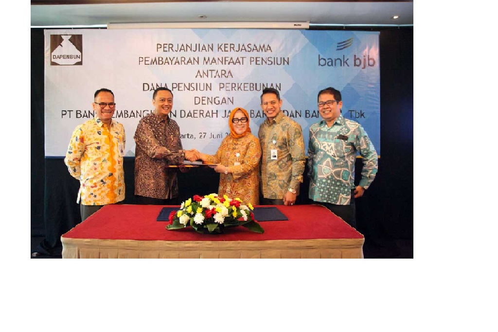 PT Dana Pensiunan Perkebunan merupakan badan hukum yang didirikan oleh oleh PT Perkebunan Nusantara I hingga XIV untuk menghimpun, mengelola, dan melaksanakan pembayaran program manfaat Pensiun pasti bagi seluruh karyawannya yang berada di seluruh Indonesia. Kerjasama ini salah satunya mendukung PT DAPENBUN dalam pelaksanaan pembayaran manfaat pensiun kepada seluruh pegawai melalui account kantor bank bjb di seluruh Indonesia.