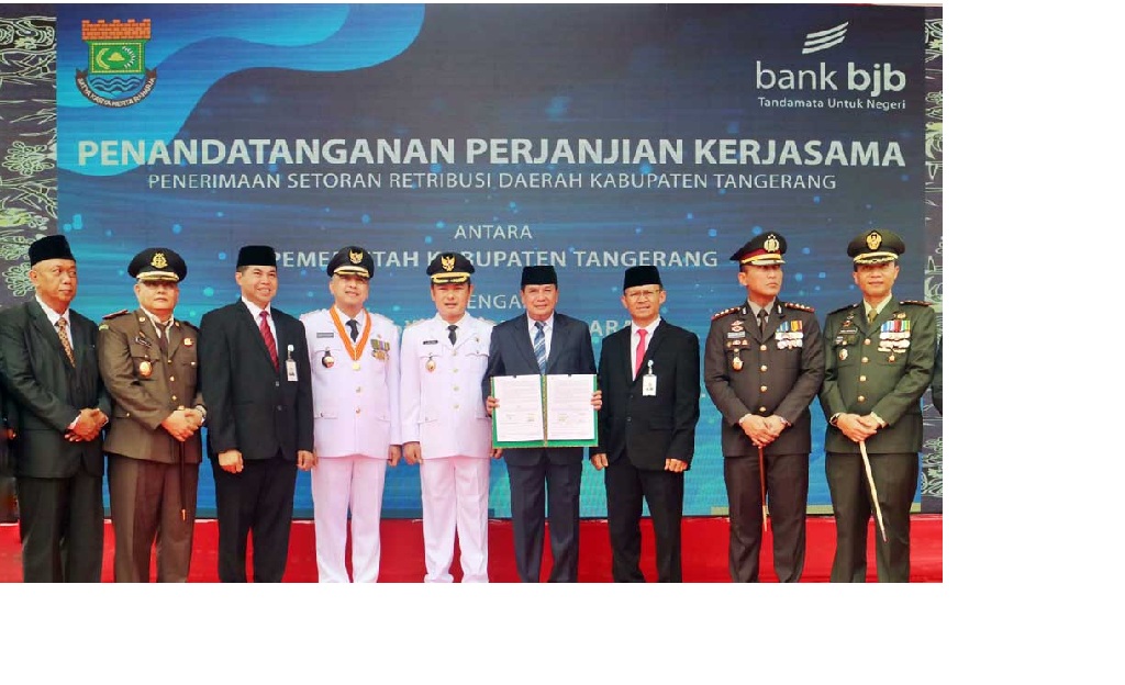 TANGERANG, FOKUSJabar.id : Kali ini Pemerintah Kabupaten Tangerang bersama bank bjb melakukan penandatangan Perjanjian Kerja Sama (PKS) tentang “Layanan Penerimaan Setoran Retribusi Daerah di Kabupaten Tangerang”. Acara penandatanganan PKS ini dilaksanakan di Lapangan Maulana Yudha Negara, Kantor Bupati Kab. Tangerang (17/8) bersamaan dengan acara Launching Pembayaran PBB-P2 Kabupaten Tangerang melalui bank bjb bekerjasama dengan Bukalapak dan Tokopedia.