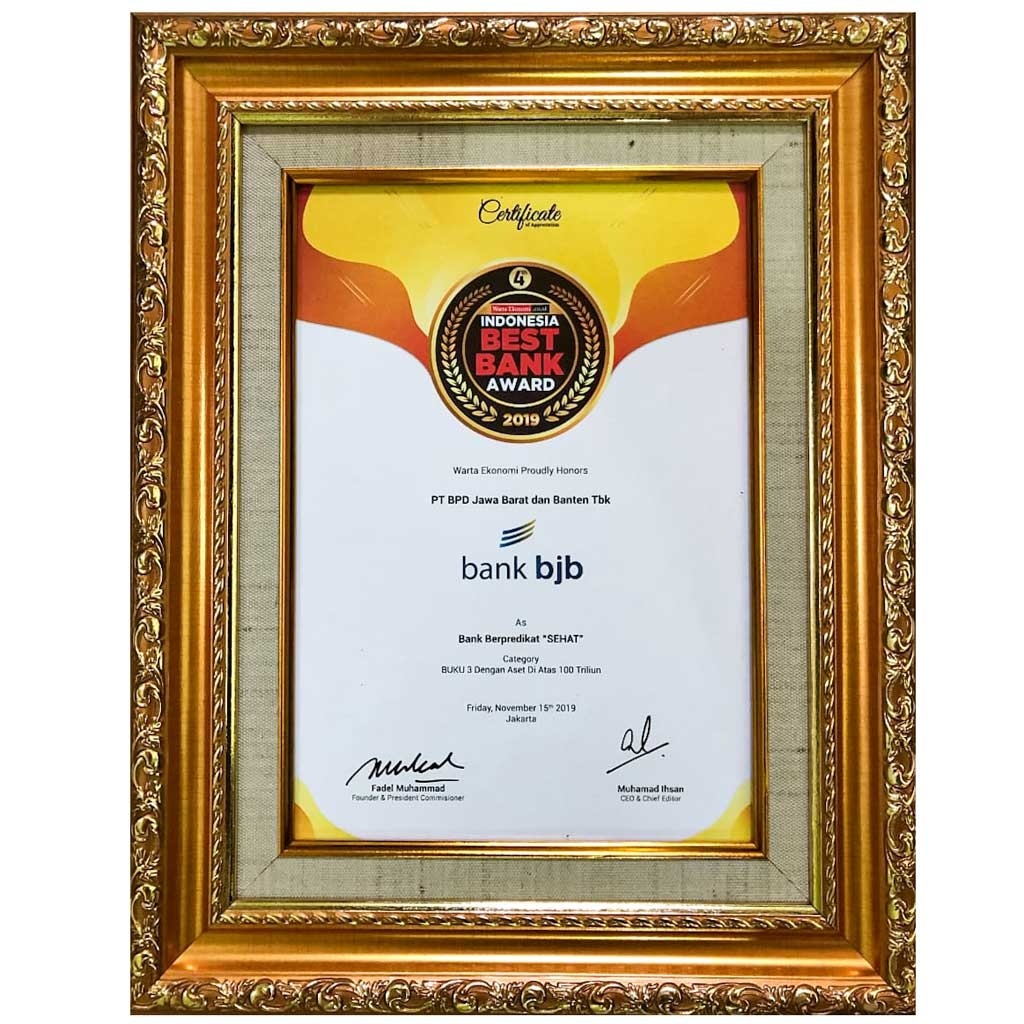 Catatan yang diguratkan bank bjb ini membuat perseroan mendapat penghargaan sebagai Bank Berpredikat “SEHAT” pada Kategori BUKU 3 dengan Aset di Atas Rp100 Triliun. Komplimen tersebut diraih bank bjb dalam Indonesia Best Bank Award 2019 yang diselenggarakan di Mawar Ballroom, Balai Kartini, Jalan Gatot Subroto, Jakarta, Jumat (15/11/2019).