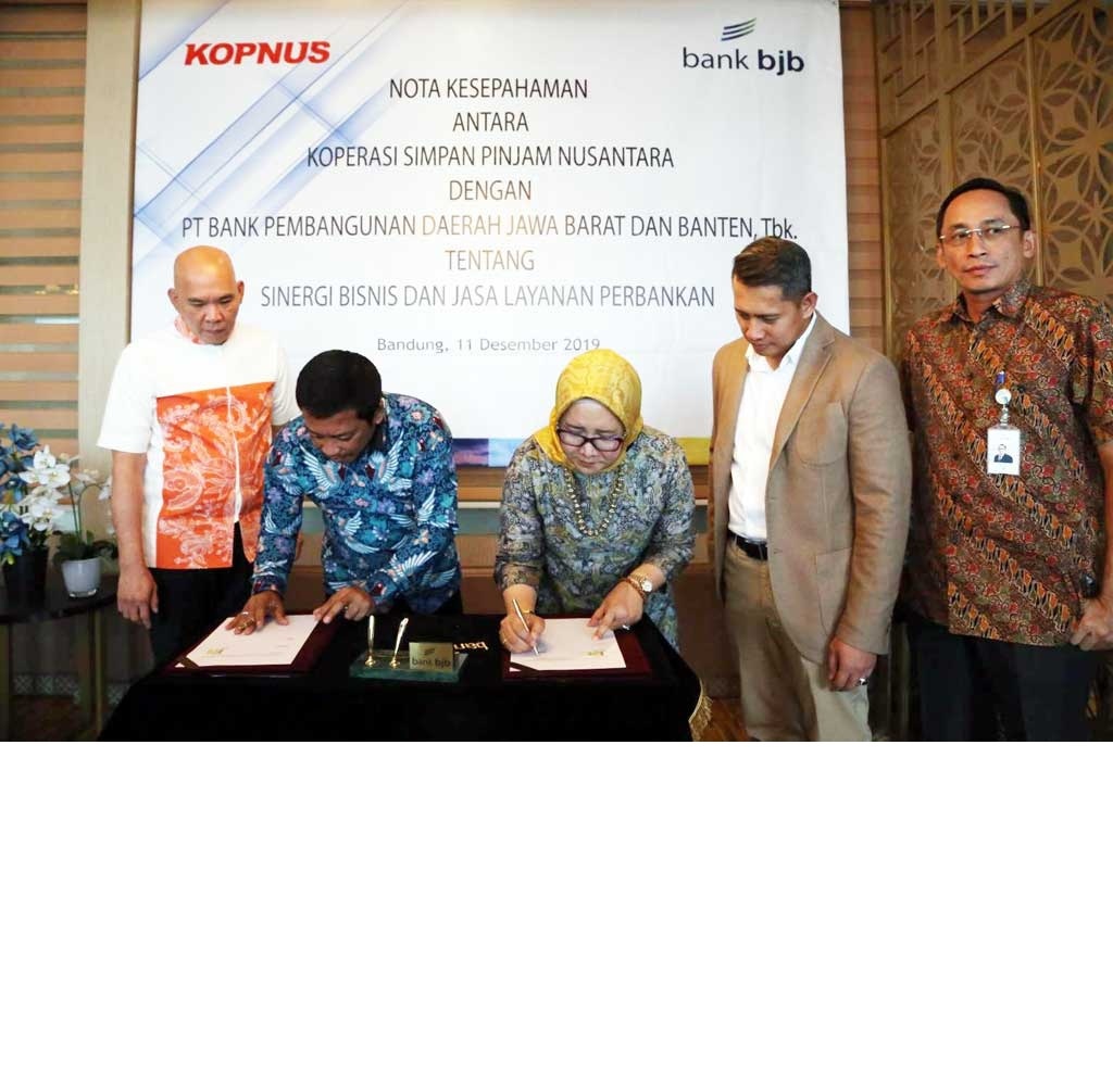 Penandatanganan nota kesepahaman (MoU) dilakukan oleh Direktur Konsumer & Ritel bank bjb Suartini dengan Ketua Koperasi Simpan Pinjam Nusantara Dedi Damhudi dan Pengawas Kopnus Rahmat.