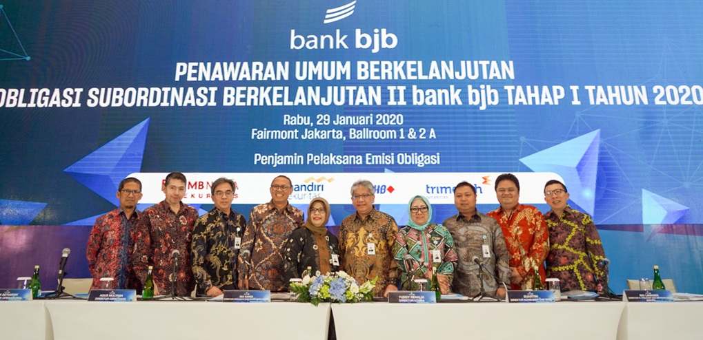 JAKARTA, FOKUSJabar.id : Bank bjb melakukan aksi korporasi PUB II (Obligasi Subordinasi Berkelanjutan II) Tahun 2020. Penghimpunan dana dari pasar modal tersebut akan dilakukan dalam dua tahap dan ditargetkan dapat menyerap total dana sebesar Rp1 triliun.