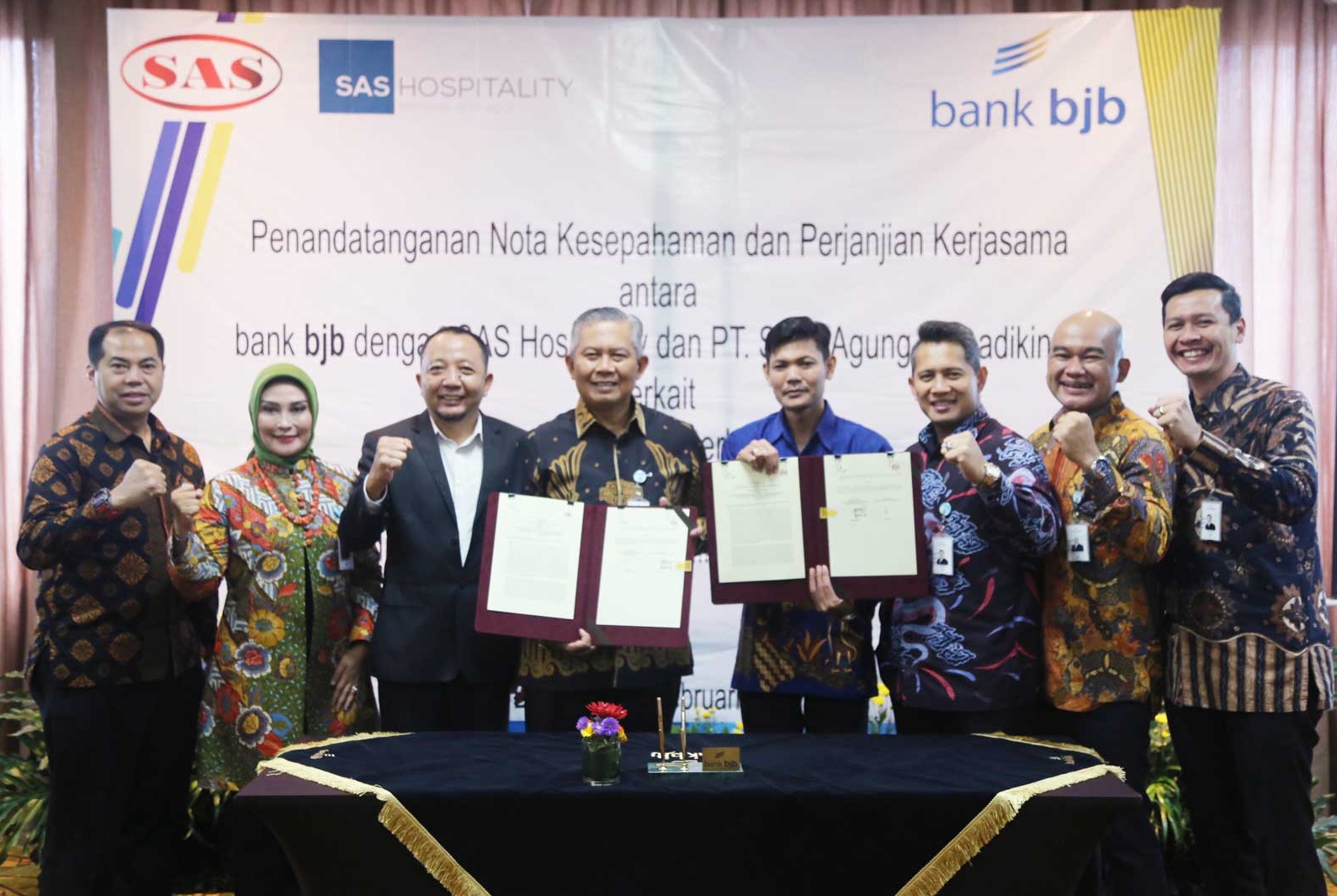 Kesepakatan ini diresmikan melalui penandatanganan nota kesepahaman yang dihadiri oleh Senior Executive Vice President Bisnis bank bjb Beny Riswandi, Pemimpin Divisi Hubungan Kelembagaan bank bjb Isa Anwari, Direktur PT Selaras Abadi Sentosa (SAS Hospitality) Martono, dan Direktur Utama PT Sinar Agung Prasadikindo di Hotel Grand Tjokro Bandung, Jalan Cihampelas, Kota Bandung, Jawa Barat, Senin (24/2/2020).