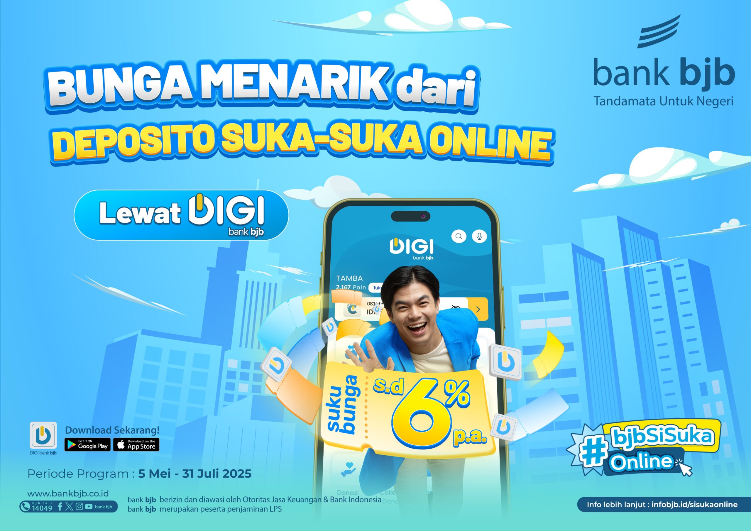 Jangan lewatkan kesempatan emas ini! Program bjb SiSuka Online dengan suku bunga menarik ini hanya berlaku hingga 31 Desember 2025. Manfaatkan investasi digital ini untuk membangun masa depan finansial yang lebih mapan.