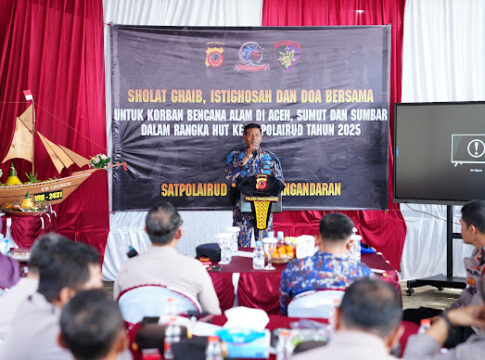 PANGANDARAN,FOKUSJabar.id: Satuan Polisi Air dan Udara (Sat Polairud) Polres Pangandaran. Menggelar sholat ghaib, istighozah, serta doa bersama untuk para korban bencana alam di Aceh, Sumatera Utara, dan Sumatera Barat. Kegiatan tersebut merupakan perayaan Hari Ulang Tahun (HUT) Polairud ke-75.
