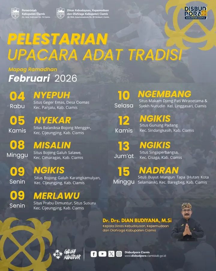 Kepala Disbudpora Kabupaten Ciamis, Dian Budiana, menilai berbagai prosesi adat yang rutin digelar menjelang bulan suci Ramadan mencerminkan kepedulian masyarakat terhadap nilai-nilai sejarah dan spiritual warisan masa lalu.